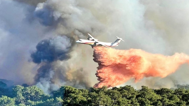 Yangına 4 uçak ve farklı bölgelerden gelen çok sayıda itfaiye ekibi müdahale ediyor.