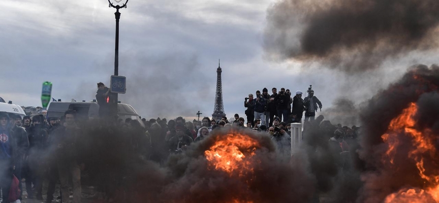 Fransa Başbakanı Elisabeth Borne'nin, emeklilik yaşını 62'den 64'e çıkarmayı hedefleyen reforma ilişkin yasa tasarısını oylamadan geçirme kararı almasının akabinde Paris'in yanı sıra ülkenin farklı kentlerinde reform karşıtları gösteri düzenledi ve sokağa indi.