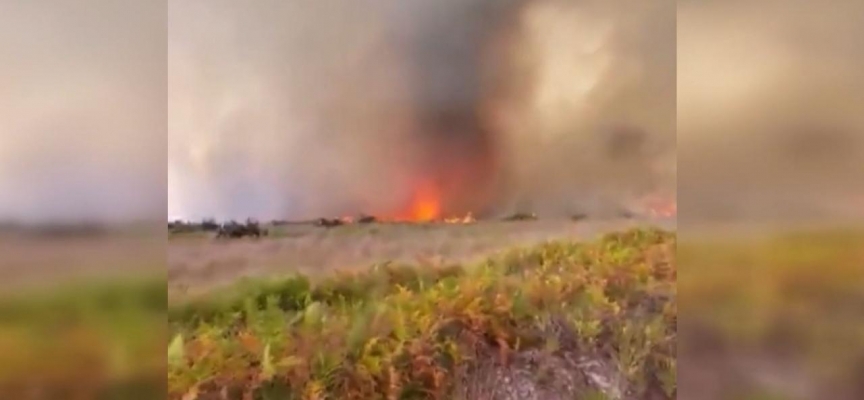 Yangın sırasında sıcak, kuru hava ve rüzgarın etkisiyle alev hortumu oluştuğu görüldü.