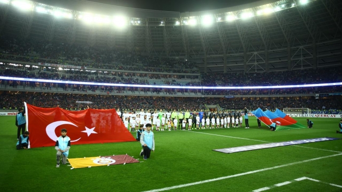 Stadın neredeyse tamamını dolduran futbolseverler maç boyunca ellerinde Türk ve Azerbaycan bayraklarıyla her iki takımı da destekledi.
