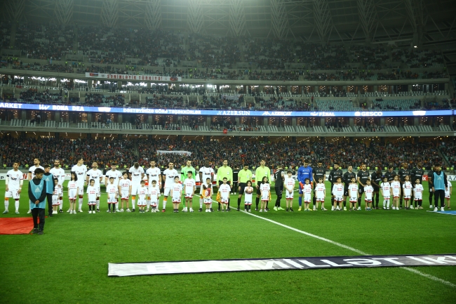 Karşılaşma öncesi futbolcularla birlikte Azerbaycanlı şehit çocukları da sahaya çıktı.