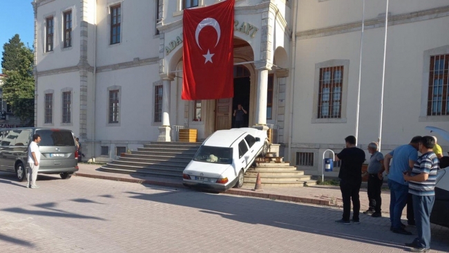 Hilmi B'nin kullandığı otomobil, Kefevi Mahallesi Hükümet Konağı Meydanı'nda gaz pedalının takılı kalması nedeniyle kontrolden çıkarak, Adliye Sarayı binasının ön giriş kapısındaki merdivene çarptı.