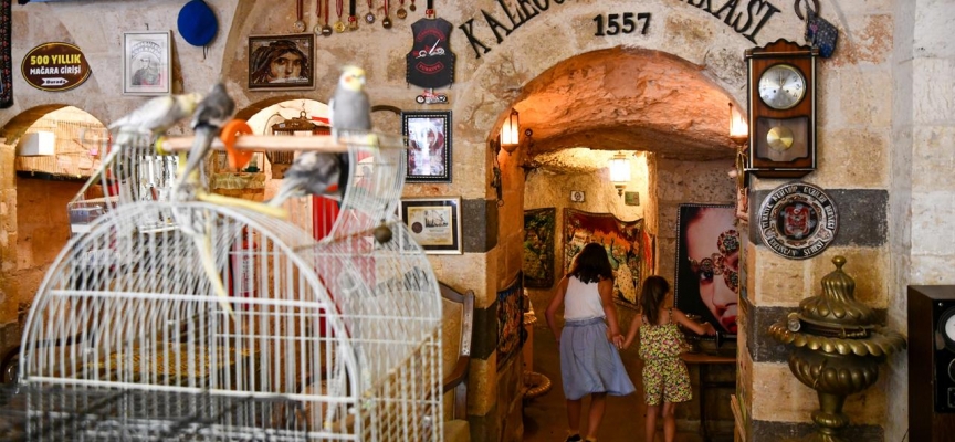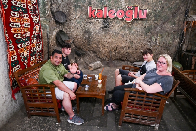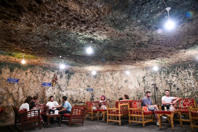 Hava sıcaklığının bazen 40 dereceyi bulduğu kentte, yerli ve yabancı turistler doğal serinliği nedeniyle mağaradaki kafeye geliyor.