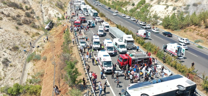 Otobüsler için belirlenen hız sınırının 100 kilometre olduğu TAG Otoyolu'nun Nizip bölümünde önceki gün meydana gelen kazalarda, aralarında 3 sağlık görevlisi, 3 itfaiye personeli ve 2 basın mensubunun bulunduğu 15 kişi yaşamını yitirmiş, 31 kişi de yaralanmıştı.