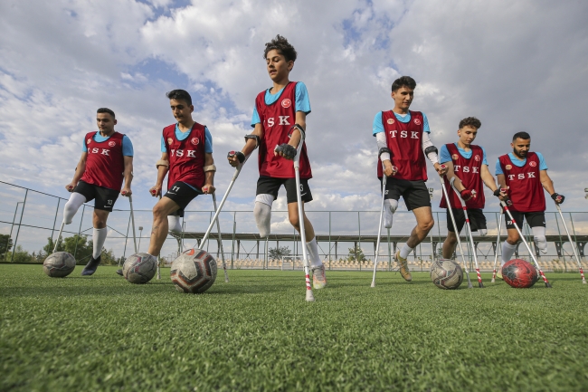FETÖ'nün 15 Temmuz 2016'daki darbe girişiminde Cumhurbaşkanlığı Külliyesi'ne atılan ikinci bombayla sağ bacağının dizinden koptuğunu aktaran 26 yaşındaki Cafer Yılmaz da oturduğu mahallede TSK Rehabilitasyon Merkezi Engelliler Spor Kulübünün antrenörleriyle tanışması sonucu ampute futbol takımına girdiğini anlattı.