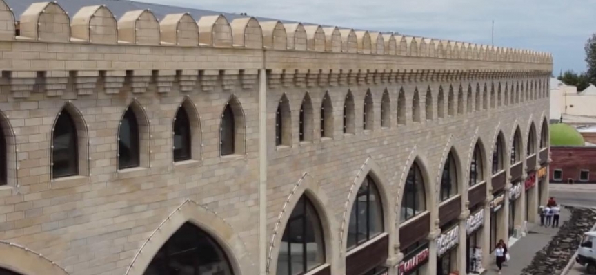 Alışveriş merkezi, tarihi Gence kentinin mimari dokusunu yansıtıyor.