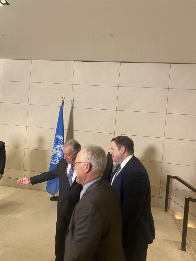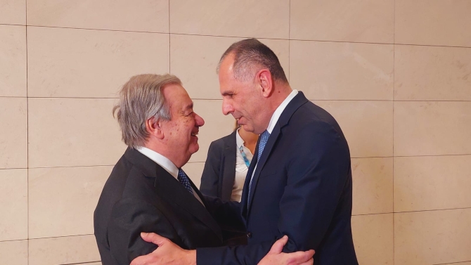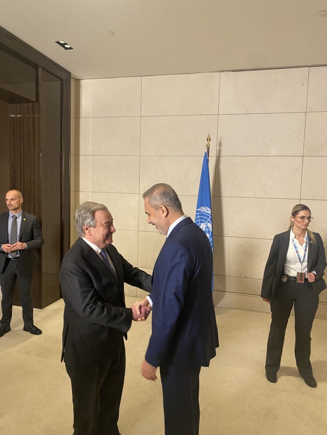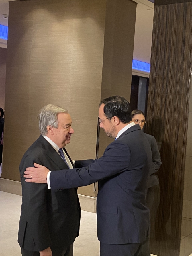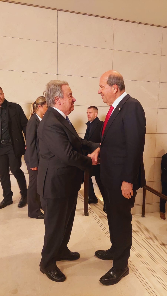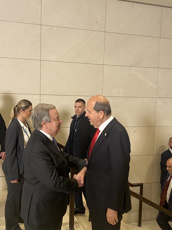 Yemek öncesinde BM Genel Sekreteri, Cumhurbaşkanı Ersin Tatar, Rum Lider Nikos Hristodulidis, Türkiye Dışişleri Bakanı Hakan Fidan, Yunan Dışişleri Bakanı Gerapetritis, İngiltere’nin Avrupa ve Kuzey Amerika’dan Sorumlu Devlet Bakanı Stephen Doughtyrety’yi kapıda karşıladı.