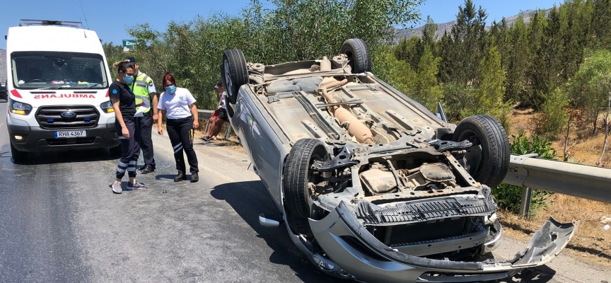 Polis Basın Subaylığı’ndan verilen bilgiye göre bugün saat 11:50 sıralarında, Girne-Lefkoşa anayolunun 10-11’inci kilometreleri arasında, Lefkoşa’da sakin Aziz GURBANOV (E-25) yönetimindeki KU 257 plakalı araç ile Lefkoşa istikametine doğru seyrettiği sırada, dikkatsizliği sonucu direksiyon hakimiyetini kaybederek orta refüjde bulunan beton korkuluklara aracının sağ ön kısmı ile çarpmış ve takla atarak tavanı üzerinde durmuştur.