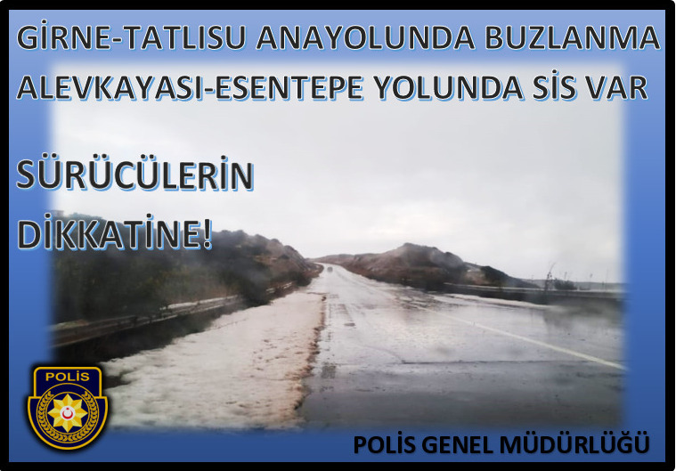Polis, Girne – Tatlısu Anayolunda buzlanma, Alevkayası – Esentepe Yolunda ise sis olduğunu duyurarak sürücüleri uyardı.