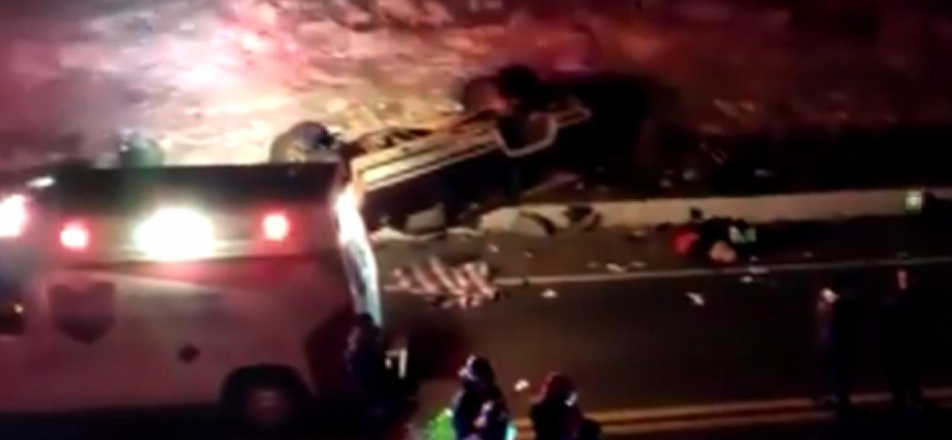 Meksika'nın Puebla eyaletinin Azumbilla şehrinde göçmeleri taşıyan minibüs kaza yaptı.
