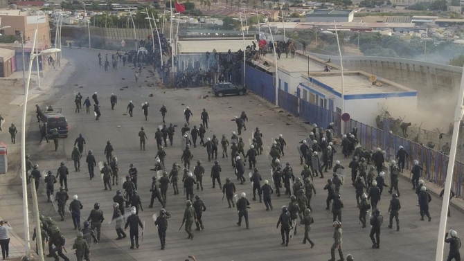 Son örnek 24 Haziran'da yaşanan göçmen izdihamı... Aynı anda Melilla'dan bin 500'den fazla göçmen Fas sınırındaki Çin Mahallesi'nde yer alan kontrol noktasının giriş kapısını kırdı.