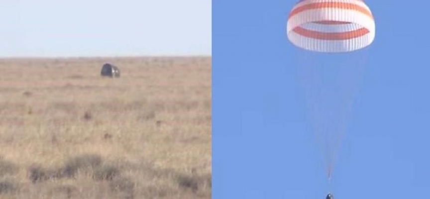 İnişine yakın zamanda paraşütleri açılan uzay aracı, Rusya’nın başkenti Moskova'daki kontrol merkezinden de izlendi.