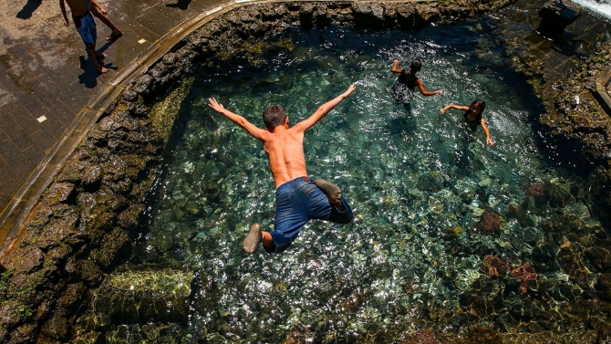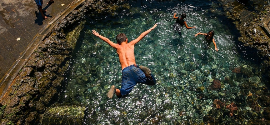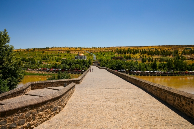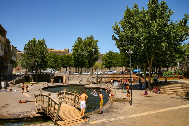Yerli ve yabancı turistler tarihi mekanları gezmek için akşam saatlerini bekliyor, çocuklar ise süs havuzlarında serinlemeye çalışıyor.