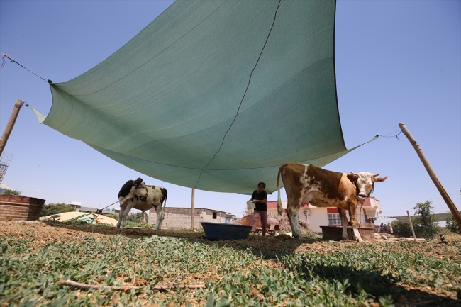 Hayvan yetiştiricileri ise fileden gölgelik yaparak hayvanlarını sıcaklardan koruyor.