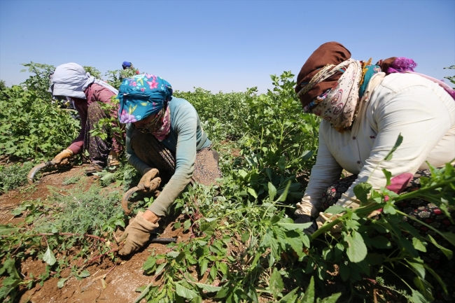 Tarlada çalışan kadınlardan Derya Yardım da güneşin altında çalıştıklarını, geçimini sağlayarak kızını okuttuğunu söyledi.