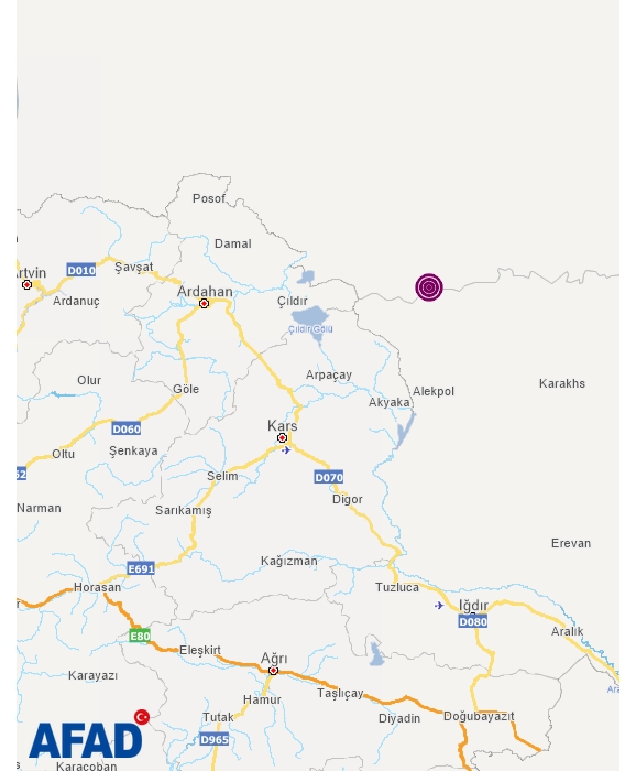 Afet ve Acil Durum Yönetimi (AFAD) Başkanlığı Deprem Dairesi'nin verilerine göre, saat 06.36'da, merkez üssü Gürcistan'ı Ninotsminda kenti olan deprem meydana geldi.