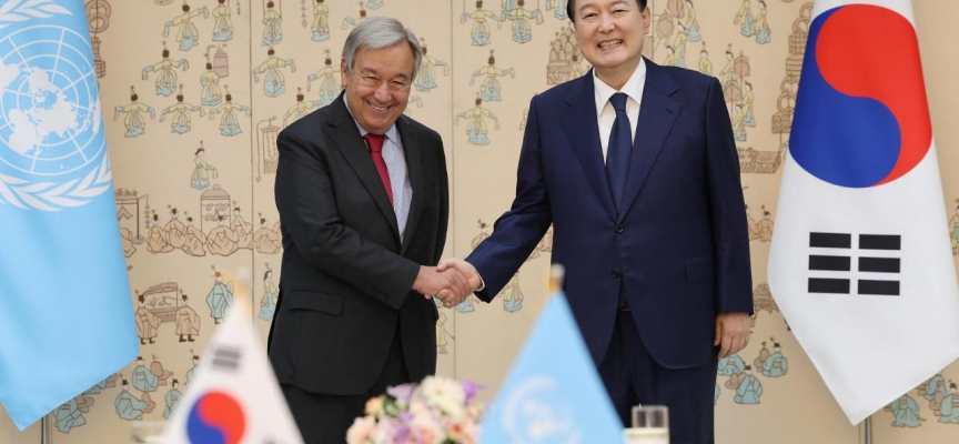 Güney Kore Devlet Başkanı Yoon Suk Yeol, başkent Seul'de, Guterres'i kabul etti.
