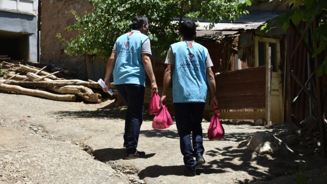Kesildikten sonra paketlenen kurban etleri, görevliler tarafından ihtiyaç sahibi ailelere teslim edildi.