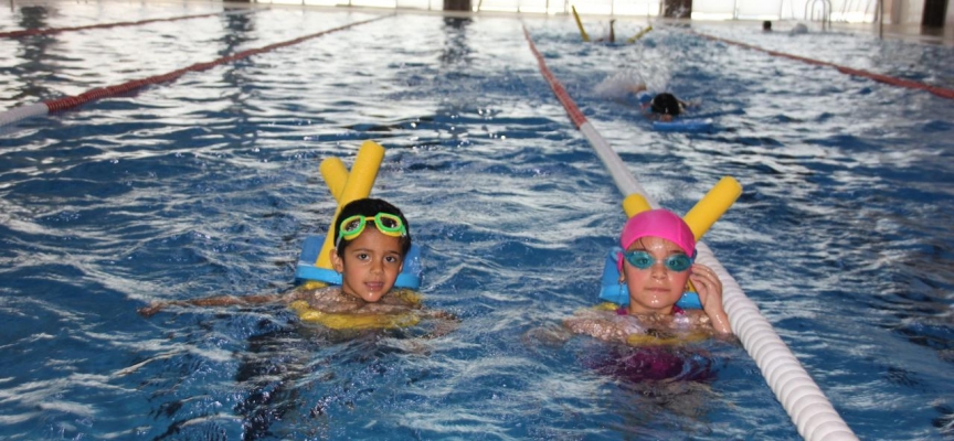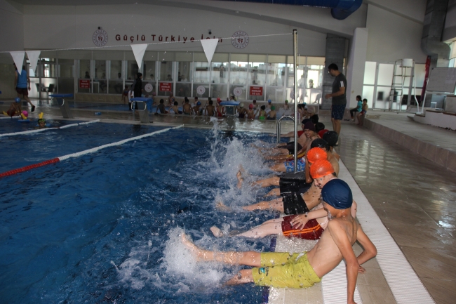 Gençlik ve Spor İl Müdürlüğü bünyesindeki yarı olimpik havuzda açılan yüzme kursu ilgi görüyor.