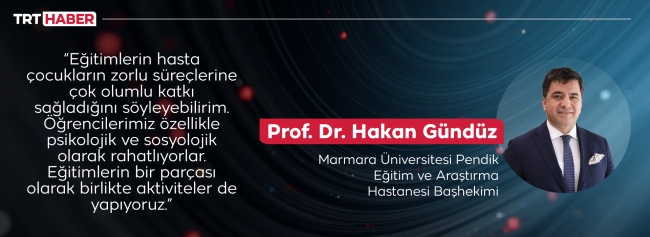 “Eğitimlerin hasta çocukların zorlu süreçlerine çok olumlu katkı sağladığını söyleyebilirim. Öğrencilerimiz özellikle psikolojik ve sosyolojik olarak rahatlıyorlar. Çok büyük bir istekle bu eğitimlere katılıyorlar. Eğitimlerin bir parçası olarak birlikte aktiviteler de yapıyoruz. Müzik, resim gibi çok çeşitli aktiviteler var.”