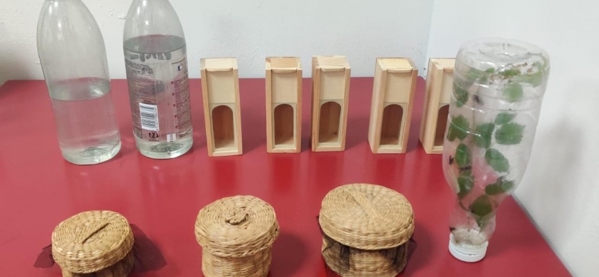 Şüphelinin yapılan üst aramasında, sırt çantasında böcekleri saklamada kullanılan 5 camlı kafes, 3 küçük ahşap sepet, 3 tüp kimyasal madde, içerisinde böcek ve bitki bulunan 3 şişe sıvı, fotoğraf makinesi, kafa lambası, el teleskobu ve 2 bıçak bulundu.