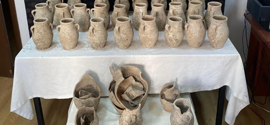 Adresteki aramada, şüphelilerin tünel kazdığı bahçede Roma dönemine ait olduğu değerlendirilen, içi boş 26 testi ve parçaları bulundu.