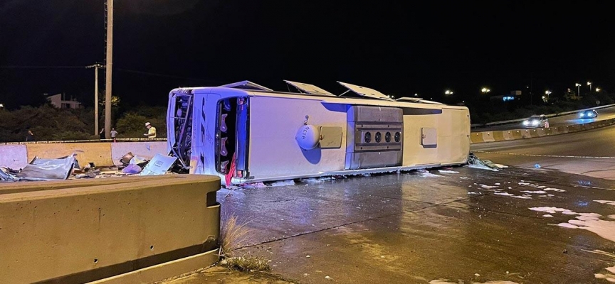 Sürücüsünün direksiyon hakimiyetini kaybettiği şehirler arası yolcu otobüsü, İskenderun-Adana Otoyolu Dörtyol gişeleri girişinde devrildi.