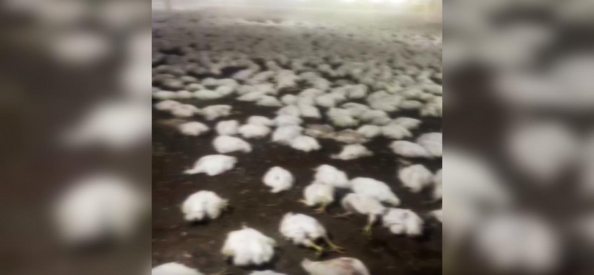 Çiftlikte bulunan 20 bin tavuk, sıcaklık sebebiyle telef oldu.