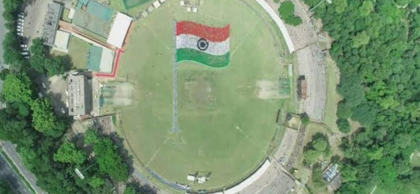 Pencap eyaletindeki Chandigarh'da kriket stadyumunda, 5 bin 885 öğrenci ülkenin 75'inci bağımsızlık gününün öncesinde dev Hindistan bayrağı oluşturdu.