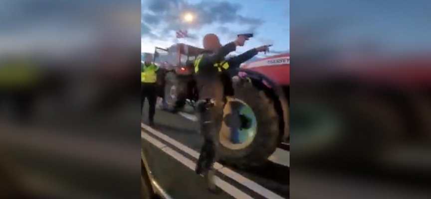 Yerel polis, traktör sürücülerinin araçlarını memurlara ve servis araçlarına sürmeye çalıştığını iddia etti .