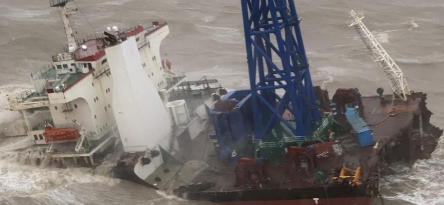 Çin bandıralı "Fujing001" adlı vinç gemisi, Chaba Tayfunu'nun yol açtığı şiddetli rüzgar ve dalgaların etkisiyle gövdesinden ikiye ayrılarak alabora olmuştu.