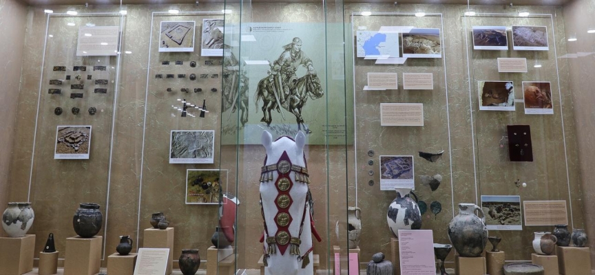 Abiş Kekilbayev Bölge Tanıtımı Müzesi Uzmanı Bakıtcan Kudaybergenulı, Hun savaşçısına ait dizgin ile eyerin müzenin gözde eserleri arasında yer aldığını söyledi.