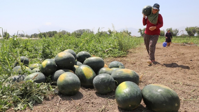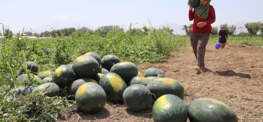 Yaklaşık 8 bin dekar alanda üretilen karpuzların toplanması için mevsimlik işçiler, tarlalarda yoğun mesai yapıyor.