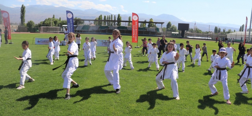 Programda stadyumda toplanan genç ve minik sporcular, farklı branşlarda gösteri yaptı.