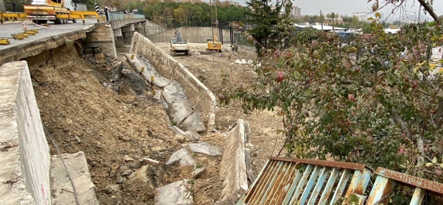 Çöken istinat duvarının enkazının kaldırılması için başlatılan çalışmalar sürüyor.