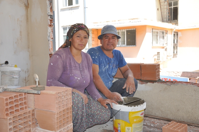 İnşaat ustası 37 yaşındaki Abdi ve kalfa 34 yaşındaki Nurgül Ceviz çifti, sabahın ilk ışıklarıyla inşaatın yolunu tutuyor.