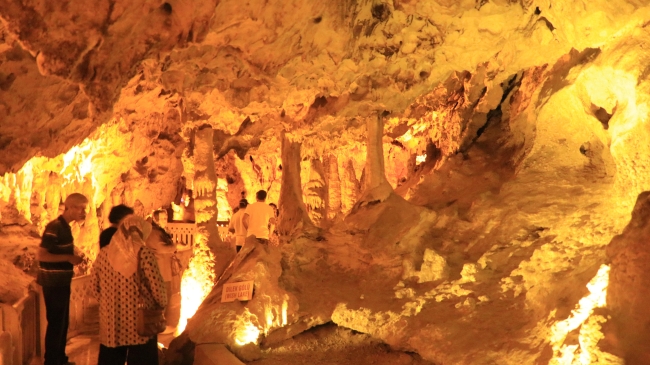 Antalya'dan İnsuyu Mağarası'nı görmek için gelen Hüseyin Özmen, "Burası doğa harikası, çok farklı ama göllerde su kalmamış. Üzüntü verici" dedi.