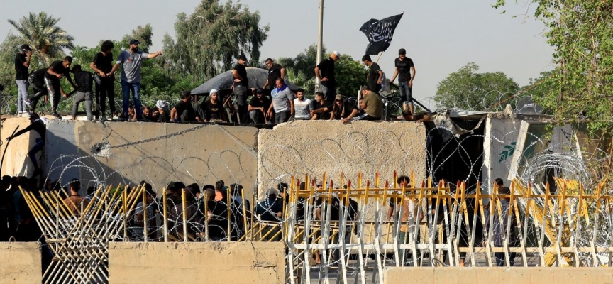Güvenlik güçleri, Bağdat'taki Yeşil Bölge'yi basan Sadr destekçilerini hükümet kurumlarından uzaklaştırmak için kalabalığa göz yaşartıcı gaz ve silahlarla müdahale etti.
