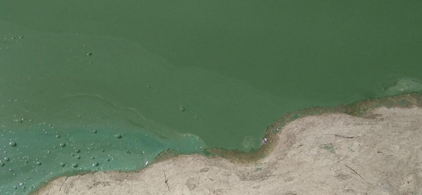 İstanbul'da su kaynaklarından biri olan Sazlıdere Barajı'nın üzerini yeşil ve mavi tabaka kapladı.