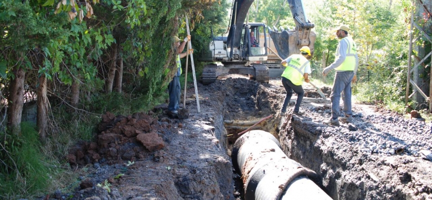 İSKİ ekiplerinin Çavuş Mahallesi Aslan Sokak'taki atık su kazı çalışması esnasında iş makinesi doğal gaz servis borusunu patlattı.