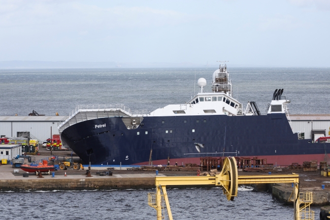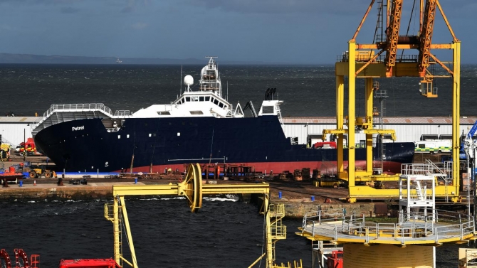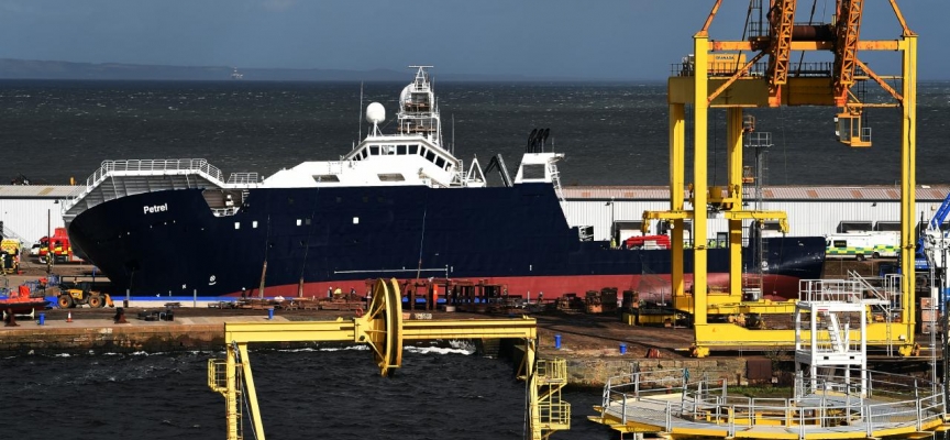 Edinburgh'daki Imperail tersanesindeki kuru havuzda bulunan "Petrel" isimli yat, sert rüzgarlar nedeniyle yerinden oynayarak yaklaşık 45 derece yan yattı.