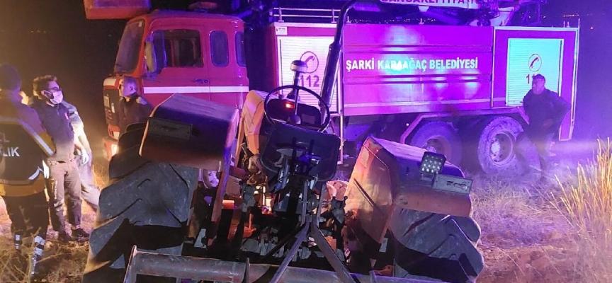 Isparta'nın Şarkikaraağaç ilçesinde Yaşar Kaymakçı, kullandığı traktörle tarlasını sürmeye gitti. Akşam saatlerinde Kaymakçı'nın eve gelmemesi üzerine tarlaya giden oğlu Ramazan Kaymakçı, babasını traktörün altında hareketsiz halde buldu.