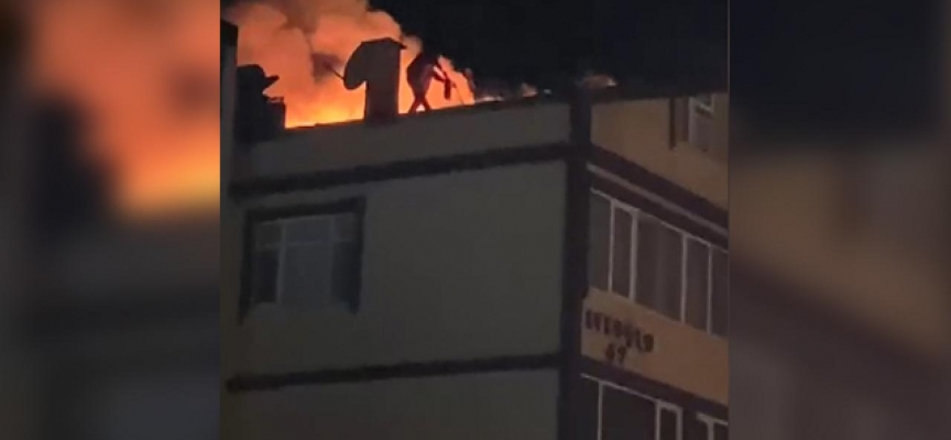 Kısa sürede büyüyen yangın apartmanın çatısına sıçradı. Yangını fark eden apartman sakinleri kısa sürede binayı boşalttı.