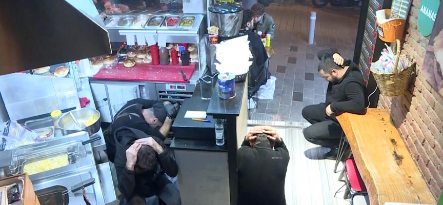 Tatbikat kapsamında telefonlara "Hayati uyarı bildirimi" başlığıyla gönderilen AFAD tatbikat bilgilendirmesi mesajı üzerine Beyoğlu İstiklal Caddesi'ndeki kafelerde bulunan vatandaşlar "Çök-Tutun-Kapan" yaparak masaların altına sığındı.