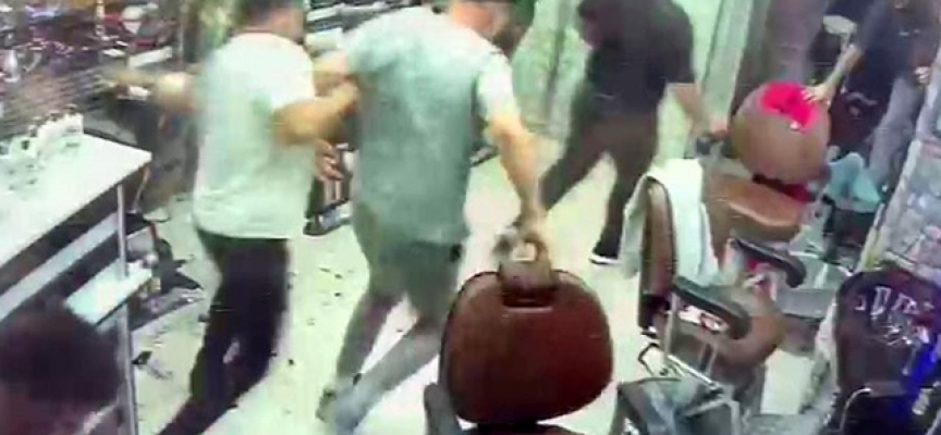Erkek kuaföründe korku dolu anlar yaşanırken, köpek de bir kişiyi ısırdı.