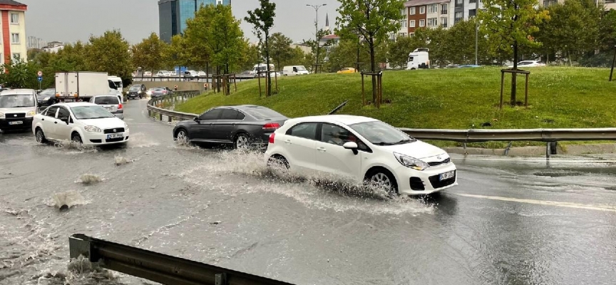 İstanbul'un Esenyurt ilçesinde etkili olan sağanak yaşamı olumsuz etkiledi. Caddelerde biriken su, sürücülere zor anlar yaşattı.