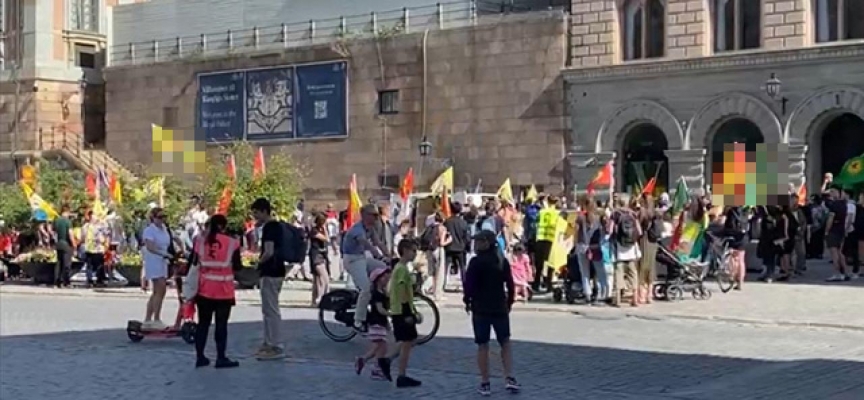 İsveç parlamentosunun önünde toplanan terör yandaşları, Türkiye aleyhine slogan attı ve Türk mallarının boykot edilmesini istedi.