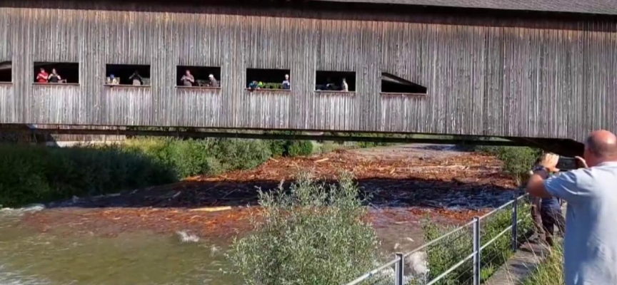 İsviçre’deki Emme Nehri’nin etkili olan şiddetli yağışlar nedeniyle taşması sonucu sel meydana geldi.