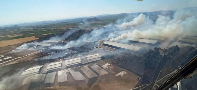 Ekipler, alevlerin bölgedeki süt fabrikasına sıçramaması için yoğun çaba sarf ediyor.