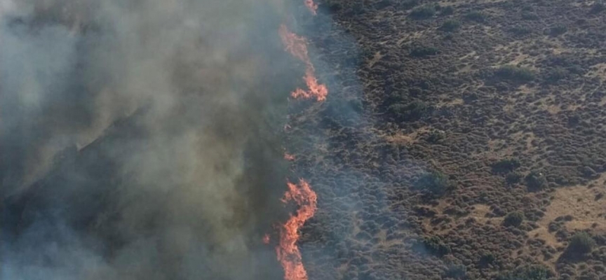 Aliağa'nın Çaltılıdere Mahallesi'ndeki otluk ve maki alanında henüz belirlenemeyen nedenle yangın çıktı.